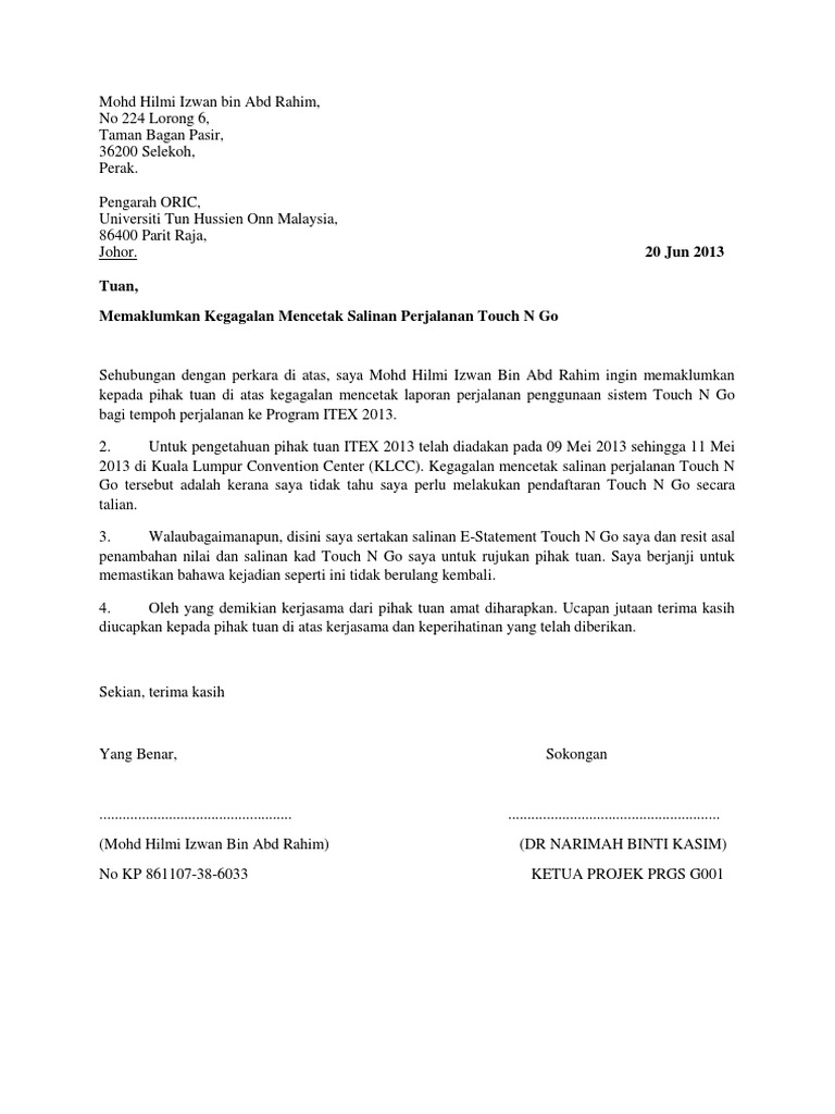 Contoh Surat Memohon Kebenaran Keluar Asrama - Puan anisah hj sawit warden kolej kediaman institut pendidikan guru kampus gaya peti surat 10491 88805 kota kinabalu sabah. Apabila menggunakan Touchn Go seperti namanya anda perlu berhenti dan menyentuh kad TnG. Contoh surat balasan surat balasan merupakan surat yang berisikan balasan surat yang sebelumnya dikirim atau dibuat.